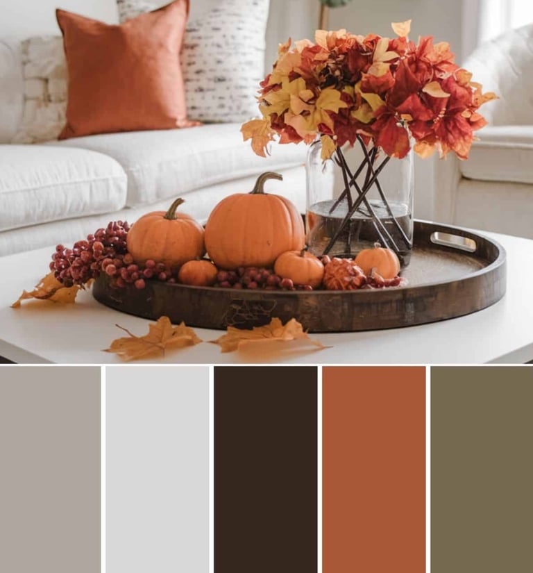 Use a rich earthy colour (say olive or terracotta) as a backdrop or on a large piece (sofa, wall), then layer textures: a velvet cushion, wool throw, natural wood side table.